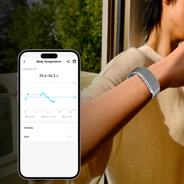 Überwachen Sie Ihre Herzfrequenz, Ihren Blutdruck, Sauerstoffsättigung (SpO₂), Körpertemperatur, EKG und HRV und gewinnen Sie tiefere Erkenntnisse durch Schlafanalyse, Stress-Tracking sowie Stoffwechsel- und Körperzusammensetzungsdaten. Zusätzlich unterstützt es das Frauen-Gesundheitsmonitoring.